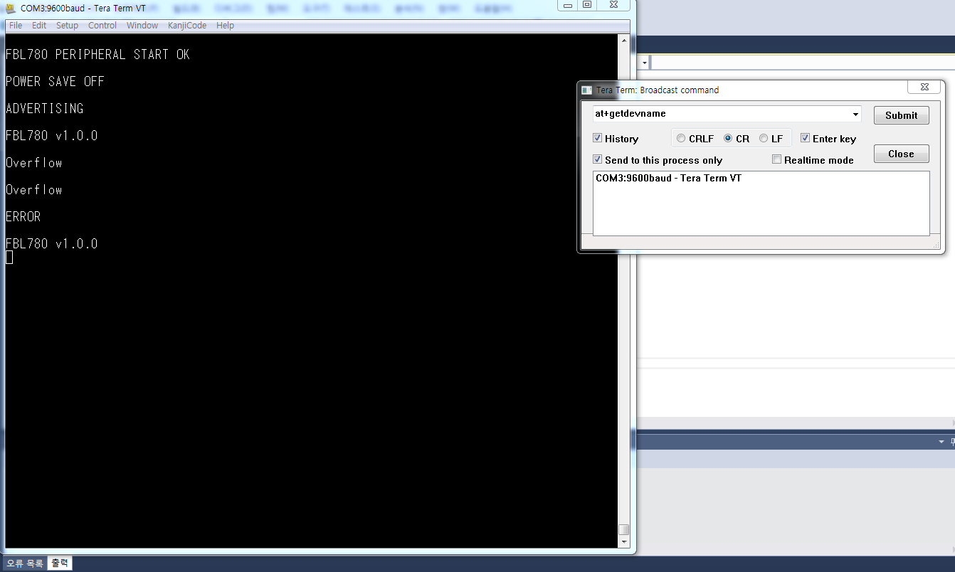 ù¹øÂ° ±×¸²Àº teratermÀ» ÀÌ¿ëÇÏ¿© test ÇÑ ±×¸²ÀÔ´Ï´Ù. º¸½Ã´Â ¹Ù¿Í °°ÀÌ broadcast commandÀÇ enter key üũ ¹Ú½º¸¦ üũ ÇÑÈÄ CRÀ» ¼±ÅÃÇÏ¿© AT command¸¦ ÀÔ·ÂÇϸé Á¤»ó ÀÛµ¿ ÇÔÀ» ¾Ë ¼ö ÀÕ½À´Ï´Ù.