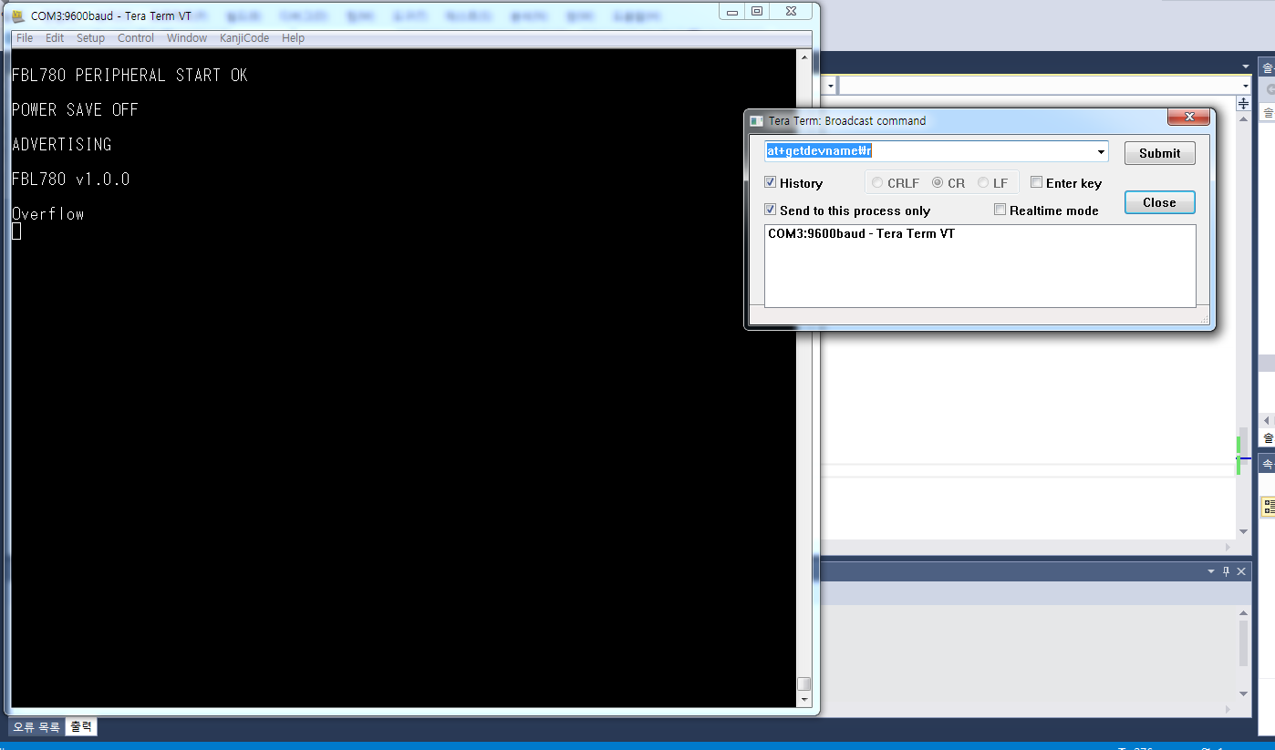 ù¹øÂ° ±×¸²Àº teratermÀ» ÀÌ¿ëÇÏ¿© test ÇÑ ±×¸²ÀÔ´Ï´Ù. º¸½Ã´Â ¹Ù¿Í °°ÀÌ broadcast commandÀÇ enter key üũ ¹Ú½º¸¦ üũ ÇÑÈÄ CRÀ» ¼±ÅÃÇÏ¿© AT command¸¦ ÀÔ·ÂÇϸé Á¤»ó ÀÛµ¿ ÇÔÀ» ¾Ë ¼ö ÀÕ½À´Ï´Ù.